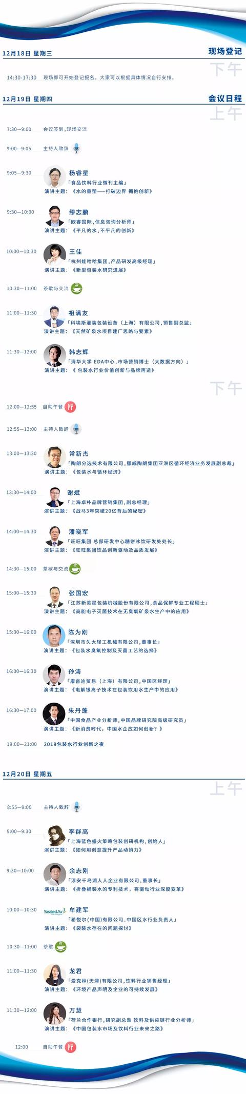 多位行业专家将会从新消费时代水企创新、品牌的价值创新以及瓶装水品牌包装设计的创意等角度详细解读行业创新。